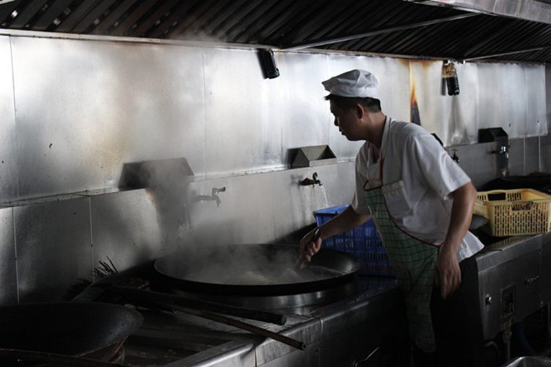 炎炎夏日,当你坐在大厅里边享用美餐边享受空调带来的凉爽时,是否会想到,在食堂的饭菜操作间,厨师们正经受着熊熊燃烧的炉火带来的 “烤” 验?