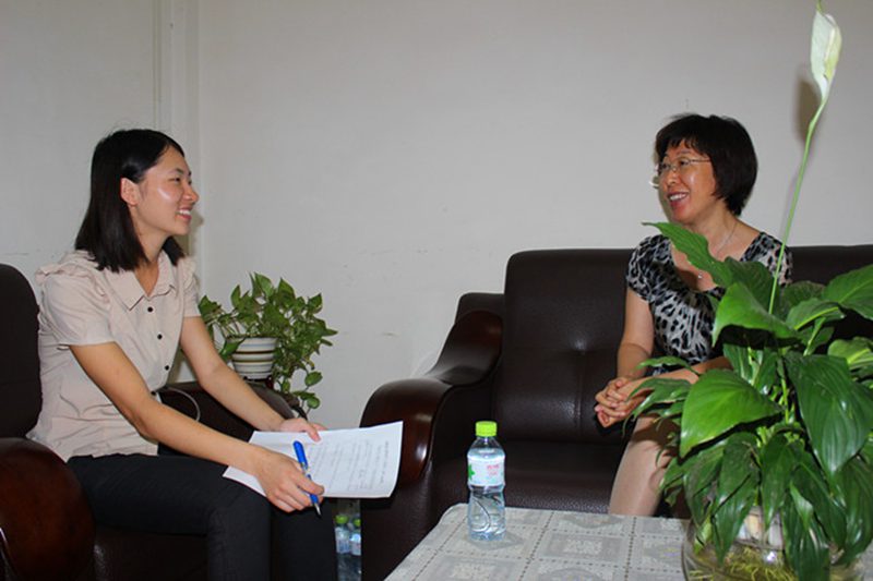 后勤集团党委书记徐凤莲在接受学生记者的采访
