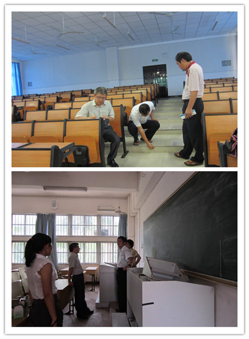 8月23日上午,后勤集团联合教务处、后勤管理处对教学楼开学前准备工作进行联合检查,保障教学环境的安全、舒适。图为教务处、后勤处的工作人员在检查。 文/图:陈红曼