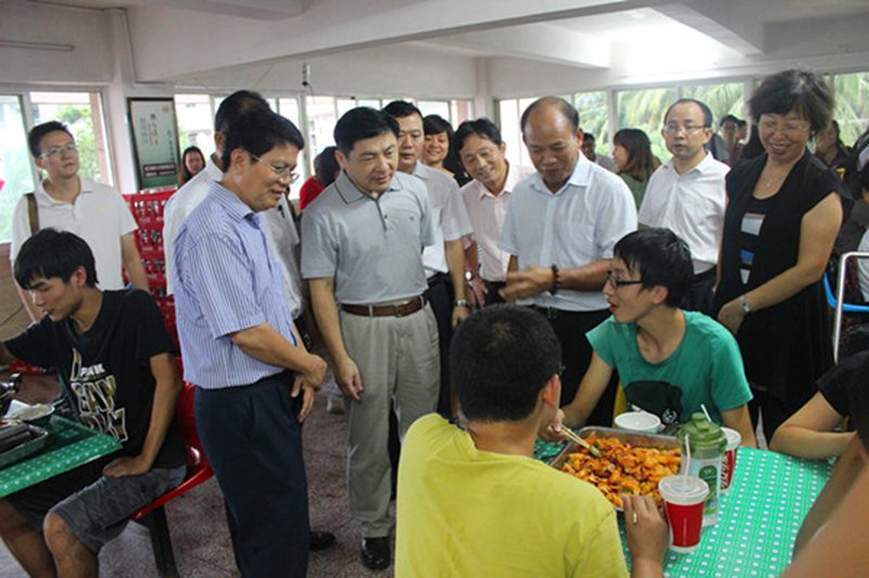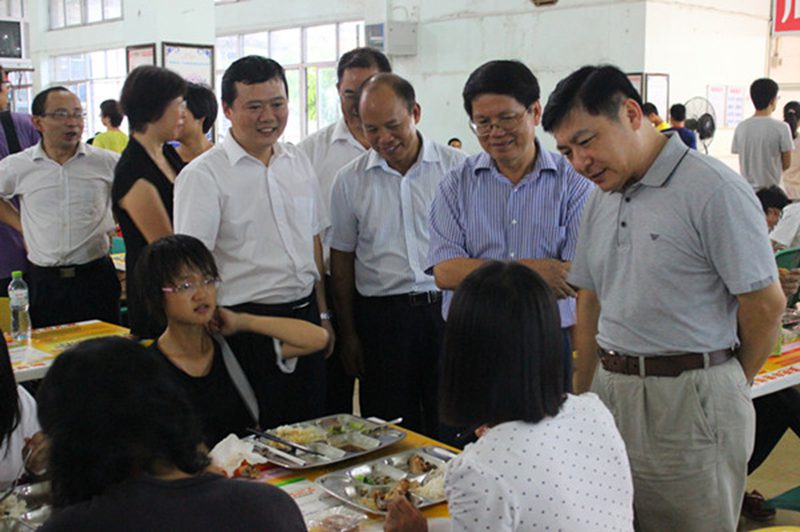 9月18日下午17:00,校党委副书记陈封椿、副校长何忠平在学生工作处、后勤集团相关部门负责人的陪同下到学生食堂视察“两节”(中秋节、国庆节)学生用餐工作,了解学生生活,并向大家致以节日的祝福。