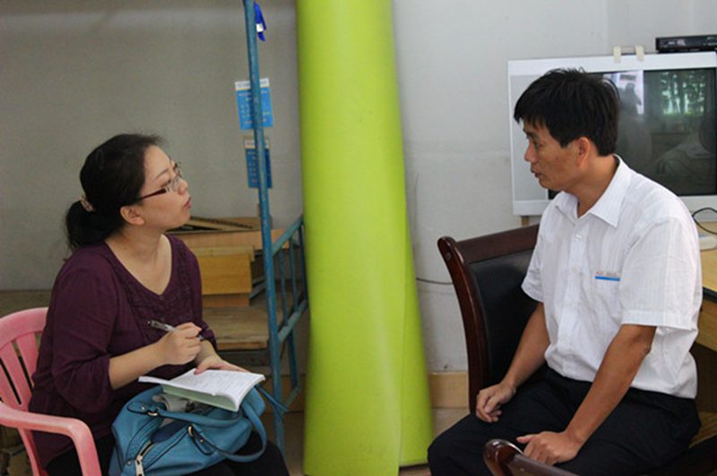 海南日报记者在采访学生宿舍管理员