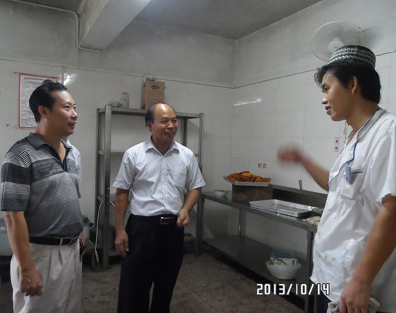校统战部副部长林少敏、集团副总经理许成强在慰问清真食堂工作人员