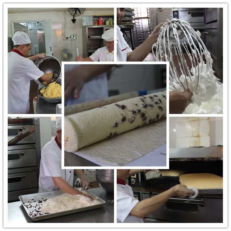 下午4点半,在加工部的糕点制作工作间里看到,两台高速旋转的机器正在和面, “制作糕点算不上什么高难度的技术活,关键是依靠经验,再一个是熟能生巧。比如面粉的选择,和面的软硬,烘烤时间、发酵时间……,每一道工序都是有讲究。面粉、水、鸡蛋等原料比例不对,多了会稀,少了也会黏,生产出来的糕点味道也不好吃。”陈碧庄师傅说。