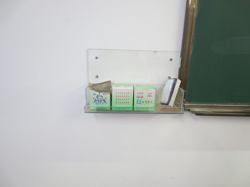 有老师反映称,教室的粉笔、黑板擦在使用过程中没有任何物件存放,摆放较乱。教学区物业管理中心得知这样的情况后,在调查的基础上,从教学用品便于索取的细节考虑,制作了240个箱子安放在黑板的左下方。在小箱子里面看到,整齐摆放着黑板檫、粉笔,老师上课时使用起来索取较为方便。针对老师提出黑板擦的质量不好的问题,教学区积极深入到市场进行调查,从市面上收集了多种不同质量的黑板擦样本,并广泛征求老师的意见,最后购进了500个黑板擦。