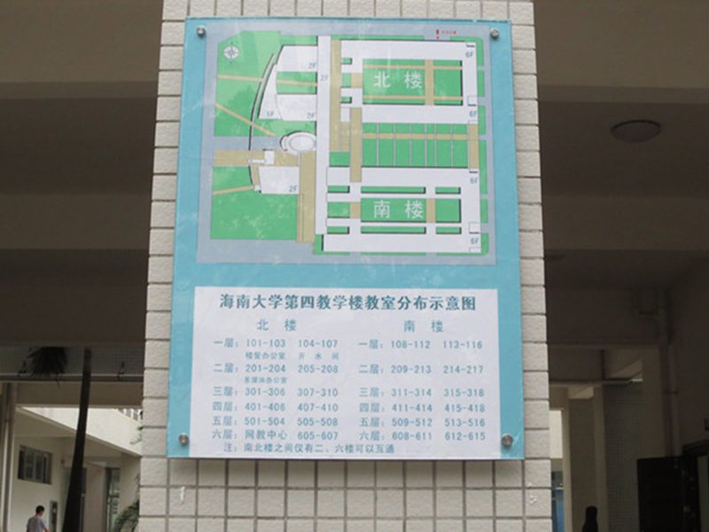有学生反映称,有的教学楼建筑面积大,入口多,教室分布在不同的位置,楼前各个入口处的导示图日晒雨淋已经模糊不清,经常为不能够快速找到上课的教室而头疼。从今天开始,这个问题已经得到解决。教学区物业管理中心在4号教学楼不同的入口处更新了10张导示图,图中清楚地标注出每楼层的教室、开水间分布情况以及“你所在的位置”。