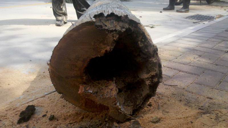 为了营造一个安全的校园环境,10月16日,校园服务中心组织全体机械工、卫生工在椰风东路对树干存在空洞的椰子树进行砍伐。