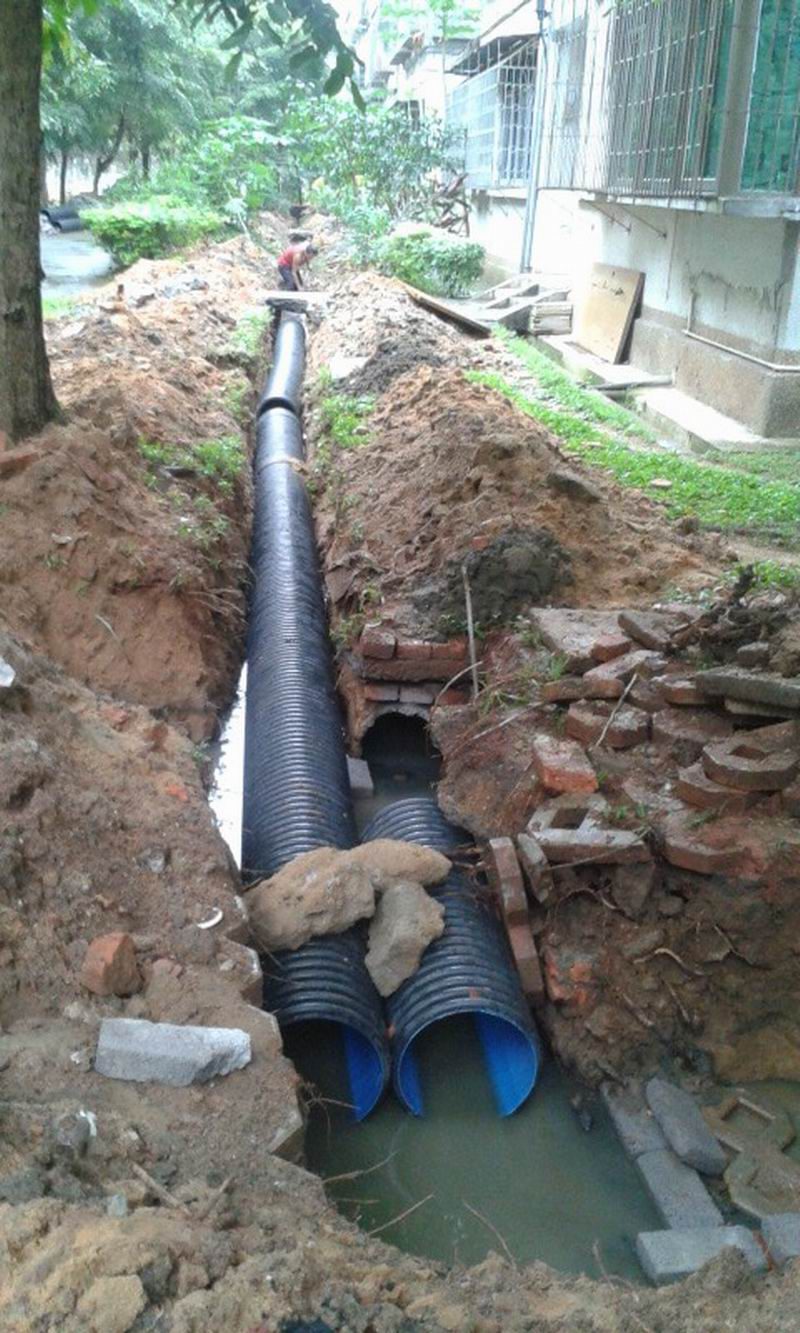 教工住宅区38栋于1994年建成使用至今已有18年,原来安装的排污管是水泥管,管口直径小,只有200mm,由于使用年限长,水泥管已经开始老化,多处出现裂痕,导致泥沙灌入管道内,造成管道堵塞,污水外溢,用水高峰期或雨天还出现过污水倒灌入一楼住户屋内现象,给38栋一楼住户的正常生活带来了不便。
