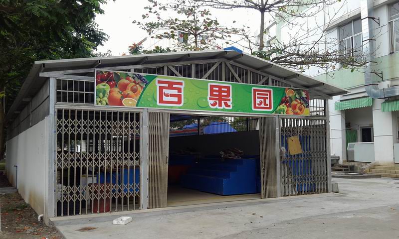 目前,原校园水果摊已顺利搬迁完毕。新校园水果摊——百果园正式投入使用。