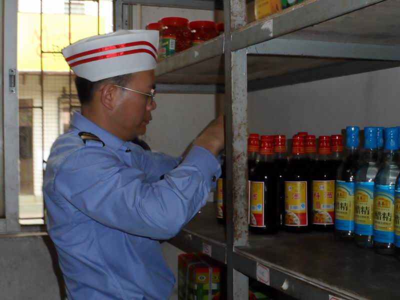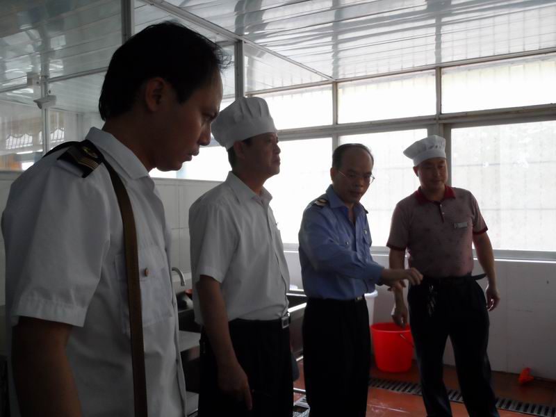 3月19日下午,海口市食品药品监督管理局科长欧兴吉一行4人先后对饮食服务中心的第一食堂二楼、第五食堂一楼、第六食堂一楼、第七食堂第一餐厅和第二餐厅进行2013年春季开学的食品安全工作抽检。饮食服务中心副主任王娇陪同检查。