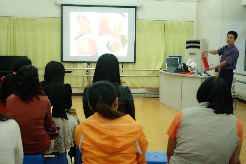 讲座上,周老师结合海南大学幼儿园教职工普遍存在消防安全意识不强、消防知识缺乏、消防自救能力不足的现实,采取图文并茂的形式对教职工们讲授了有实际意义的消防安全知识,并进行了消防器材使用演练。