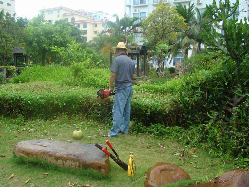 目前后勤集团组织校园服务中心绿化工及旅院服务中心机械工对园内的花卉进行修剪、杂草进行清除,估计约15天才可恢复校园中心花园面貌。