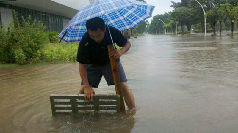 为解决排水问题,校园服务中心全面贯彻落实集团关于防台风工作会议的精神和部署,安排专人负责各路段积水严重区域,清除道路落沙井上堵塞的树枝树叶以及道路中央各类漂浮物,规定每小时巡查、清理一次各自所辖区域。同时还巡查校园是否有高大乔木歪倒、树枝断裂,发现问题及时处理。