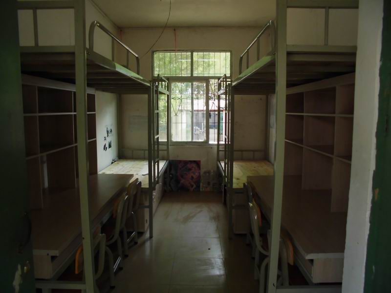 走进1#、2#、7#学生宿舍楼,全新的住宿家具给人一种别样的感觉。浅咖啡色的色泽、结构简单的组合电脑桌、充分利用空间组合床体,安排的六张床位看起来不显得拥挤和阴暗。令人赞赏的是家具的配件实用而美观,床下储物柜的拉手 、锁扣取代了以前的柜锁,弹性大的新款合页也比以前的门铰链式合页显得柔和而更为耐用,每个电脑桌位的明装插座的安装也是非常明智的设计。