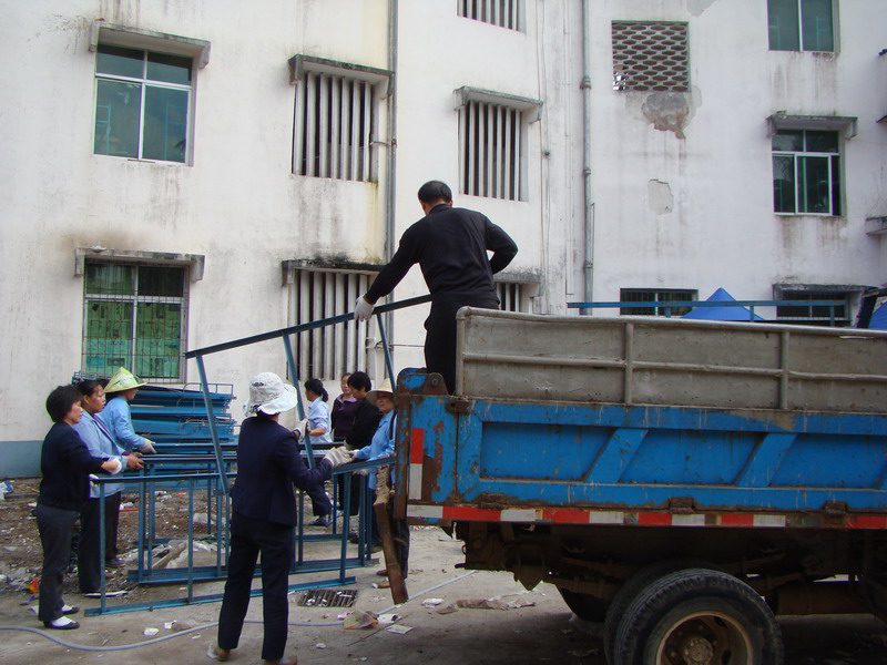 在学生区2号宿舍楼车棚存放的100余套双架床是2010年从儋州校区转移到海甸校区的,主要用于更换1号、2号、3号、6号和7号学生宿舍楼损坏的床架。为更好地保护好这批双架床,中心组织员工将其转移到旅院服务中心车棚存放,共运载10车。在搬运过程中,员工们小心翼翼,轻拿轻放,以免脱漆生锈,防止损坏。
