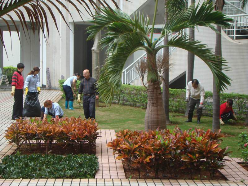 工作人员在加强教学环境美化