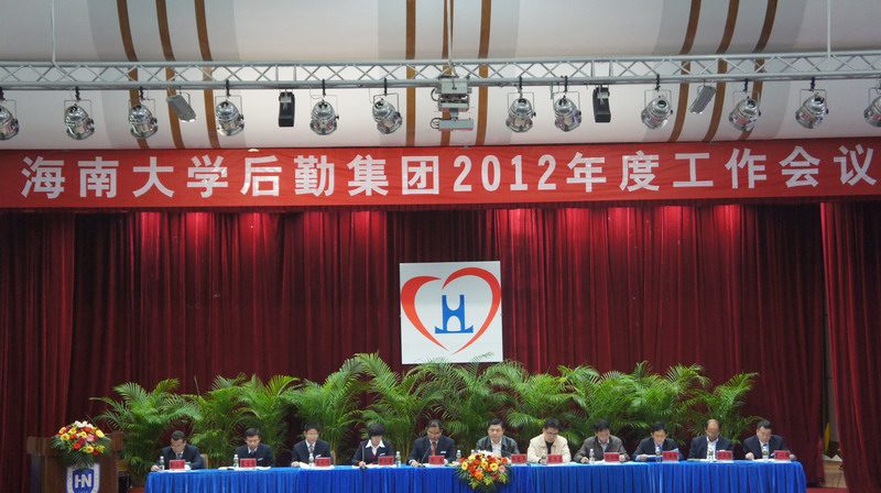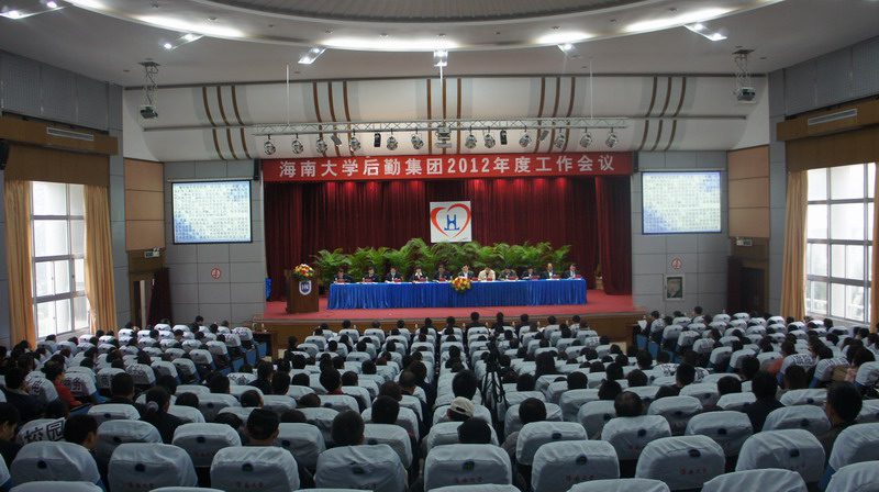 2012年3月13日下午,我校2012年度后勤工作会议在原行政办公楼二楼报告厅隆重召开,海南大学副校长何忠平、校长办公室副主任陈卫东、后勤管理处副处长邓泽明出席会议,后勤集团党政领导及各单位员工共340人参加了会议,会议由后勤集团党委书记徐凤莲主持。会议在与会人员齐唱满含激情的《集团之歌》歌声中拉开序幕。