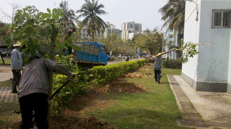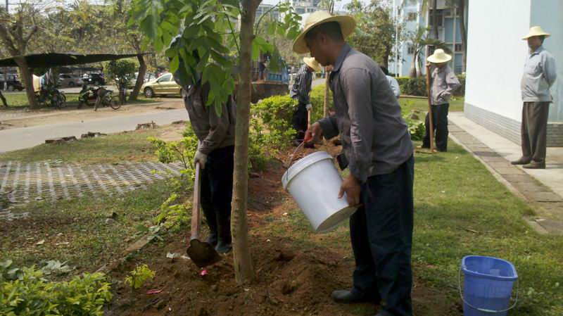 为了给广大教职工营造一个优美的居住、生活环境,4月5日,校园服务中心绿化养护项目组机械工们在邓培副主任的带领下到教工住宅区22栋东侧补种绿化乔木—火焰木。