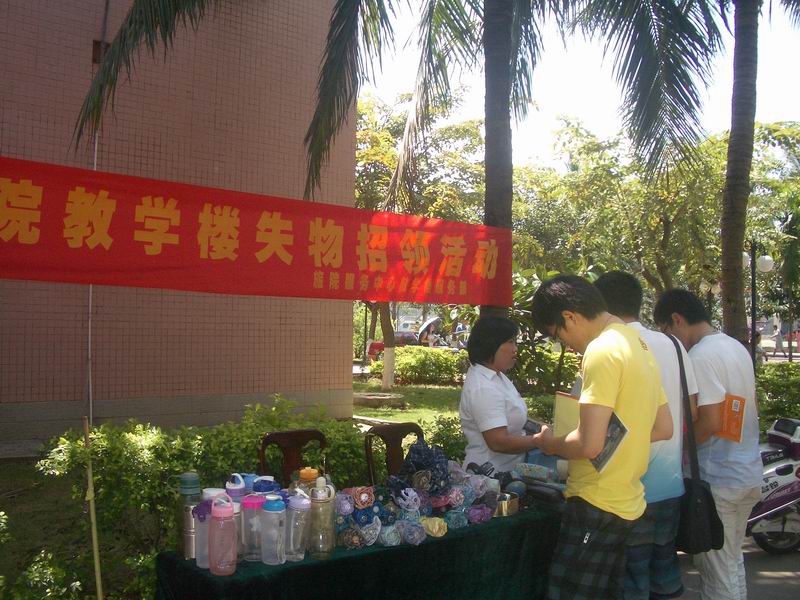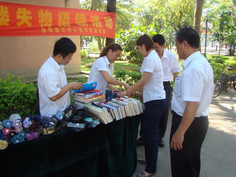 4月12日,旅院服务中心教学楼服务部在23号学生公寓楼前举行失物招领活动。