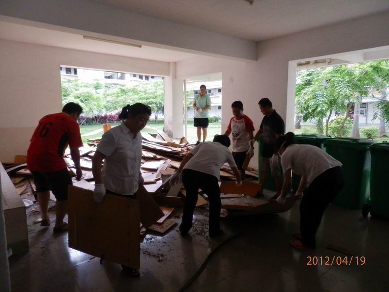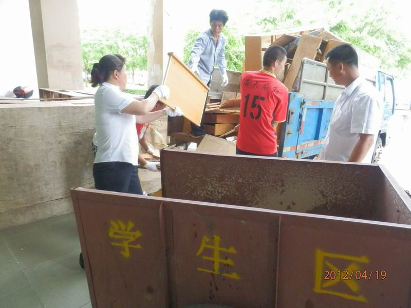 面对这一情况,4月19日下午,学生区物业管理中心组织人员对16号学生公寓楼废弃物品进行清理,共清运了5车废弃物品,重新营造干净的住宿环境。