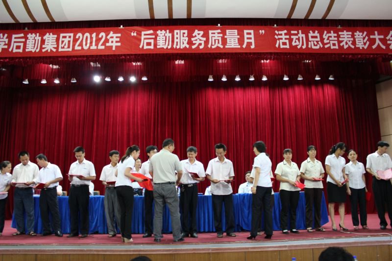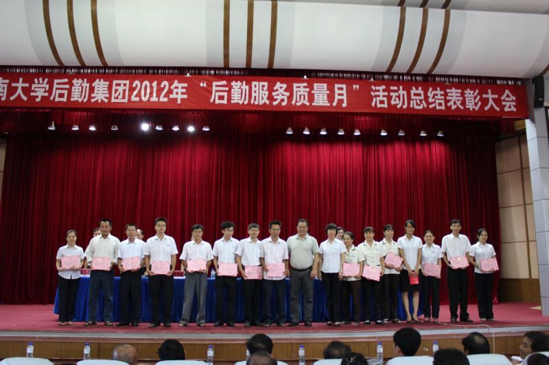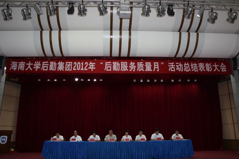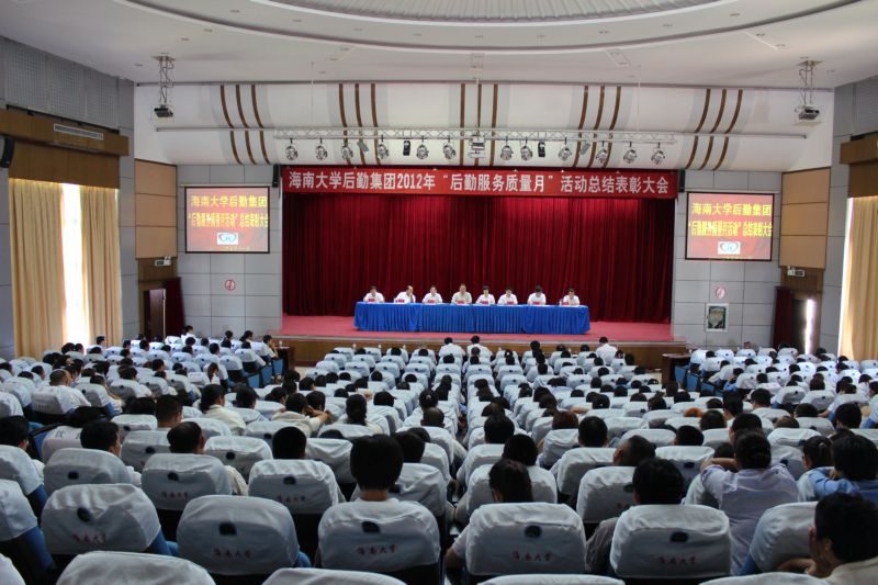 2012年5月11日上午,海南大学后勤集团2012年“后勤服务质量月”活动总结表彰大会在学校原行政办公楼二楼报告厅隆重召开。后勤集团总经理樊春,党委书记徐凤莲,副总经理李海清、李长明、许成强、邓井红,总经理助理蒙生儒、徐小华出席了表彰大会,各单位员工代表共290人参加了表彰大会。会议由李海清副总理主持。