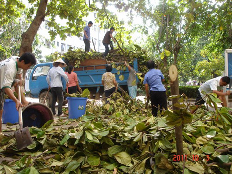 受今年第17号台风“纳沙”影响,我校海甸校区学生区的部分树木被刮倒,到处有大量断枝和落叶,为尽快恢复学生区正常的学习生活秩序,10月1日至3日,学生区物业管理中心主任李高享组织中心应急工作小组开展学生区灾后环境卫生清理工作。
