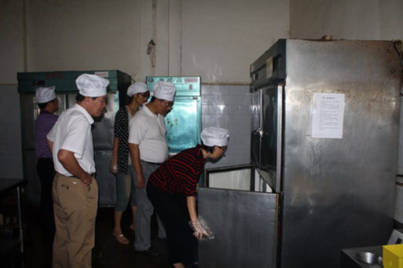 受今年第19号强热带风暴“尼格”的影响,海口市近期连续下暴雨,降雨量达到历史极值。为防止病从口入,杜绝因食品卫生安全问题造成食品中毒事件和传染病的发生,清除隐患,保障安全,10月7日上午,后勤集团总经理樊春、党委书记徐凤莲、副总经理许成强在集团办公室、集团党委办公室、质量与文化办公室和饮食服务中心等部门负责人的陪同下深入海甸校区各食堂全面检查食品安全卫生工作。