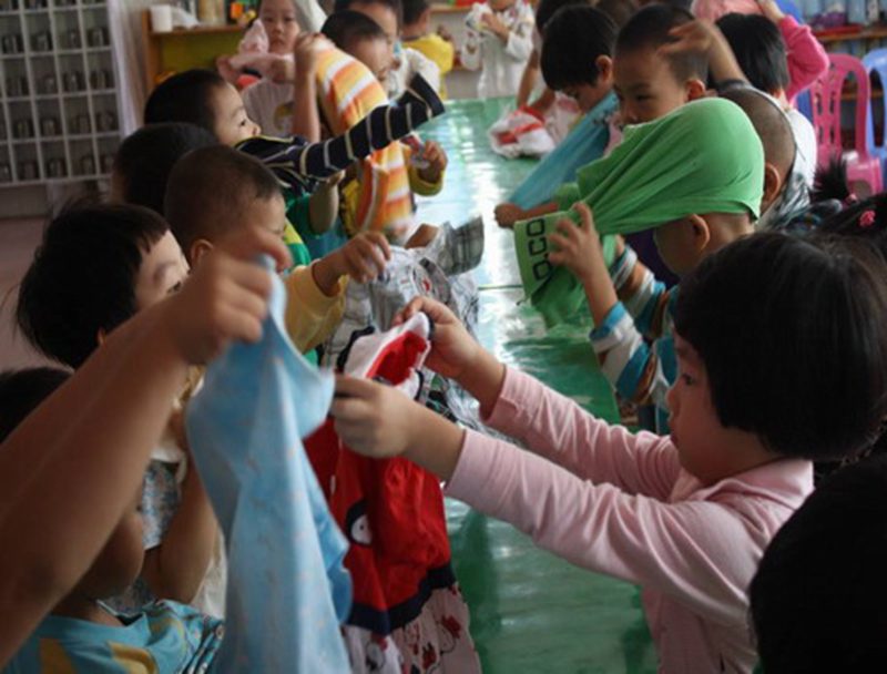 10月17日上午,海南大学幼儿园各班开展穿鞋、穿衣服、叠被子比赛,一个个稚拙可爱的孩子双手捏着衣领向后一甩,披衣、拢袖、拉拉链,有的孩子在规定的时间内很快就穿好了衣服;有的孩子动作虽稚拙但很认真,有的孩子比赛结束令已下,但仍然执着地做着没完成的动作,引得旁边小伙伴连喊“加油”,那股较真劲让老师忍俊不禁,感动不已……不论结果怎样,宝宝们的脸上都绽放出了自豪的笑容,满足的神情,孩子们深深地沉浸在活动带来的欢乐中。最后,每班分别评选出6名动手能力最棒的小朋友。