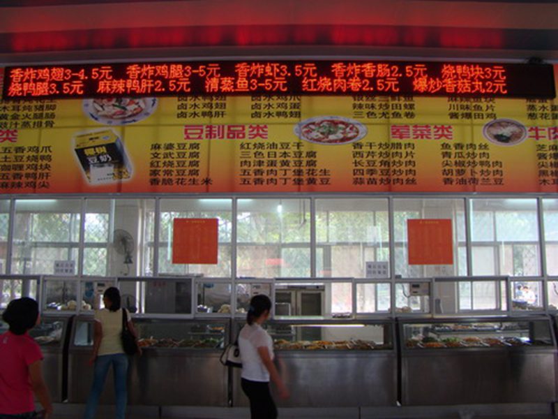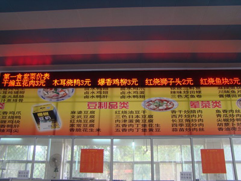 随着物价的不断上涨,饮食服务中心各食堂售菜的价格备受学生的关注,9月底召开的学生座谈会上学生们也多次提到菜价问题,要求明码标价,让同学们明明白白地去消费。学校和后勤集团的领导对此非常关注,在海南省物价局的督查下,经过一个多月的努力,终于在各食堂餐厅内安装上菜价电子显示屏幕并投入使用。