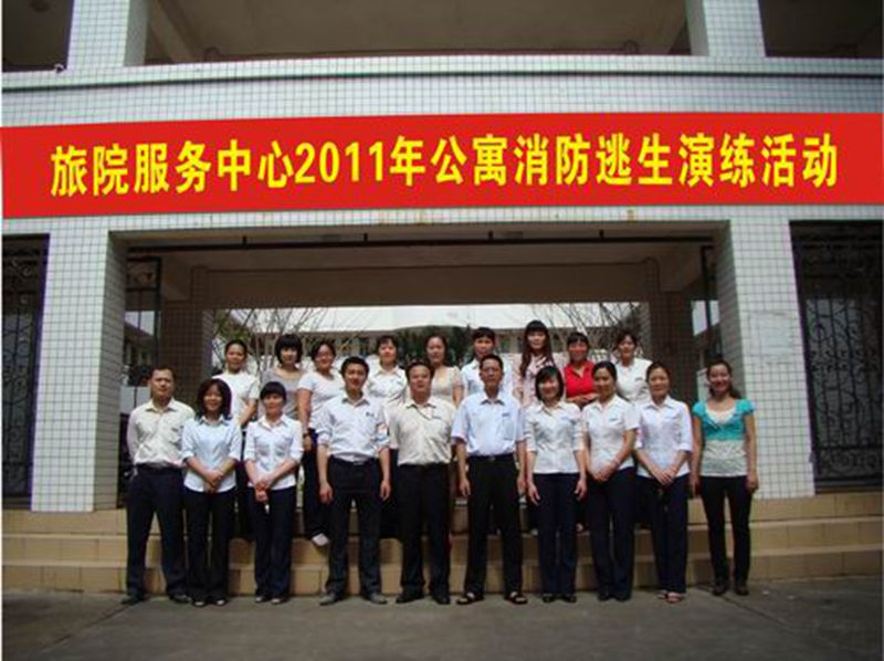 4月26日下午,旅院服务中心在二号学生公寓楼开展一场消防逃生演练,旅院服务中心全体员工和旅院一、二号学生公寓楼部分学生共80多人参加演练。校保卫处杨万喜同志、李于善同志,后勤集团总经理樊春同志、教学区物业管理中心副主任肖海滨同志、质量与文化办公室陈红曼副部长等亲临现场观摩和指导。
