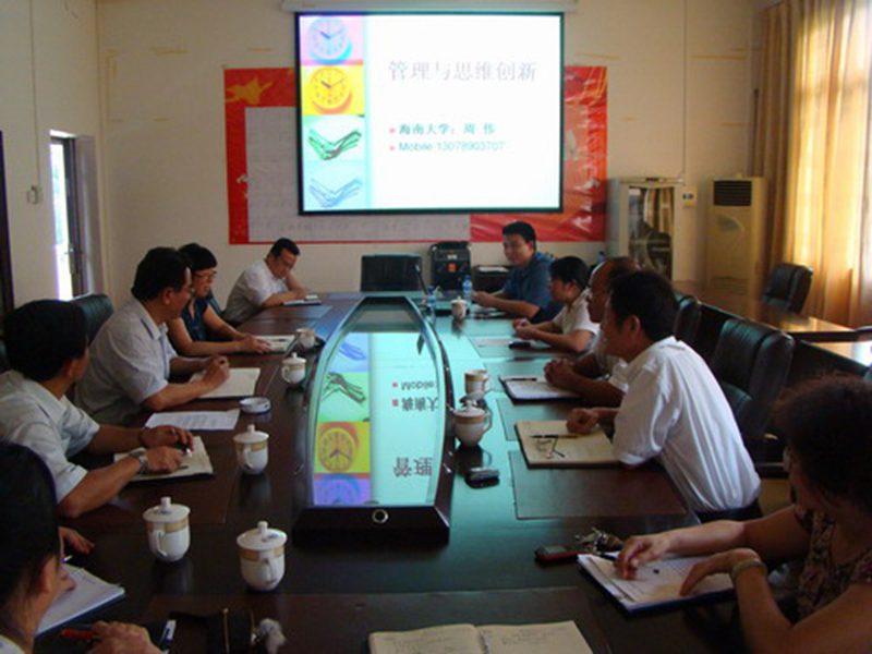 培训课上,来自海南大学政治与公共管理学院周伟博士以“管理与思维创新”为题,从管理漫谈、组织优化、权力授放、目标管理、团队建设、激励管理、细节管理、问题管理、制度创新和思维创新等十多个方面,对与会人员进行了辅导。