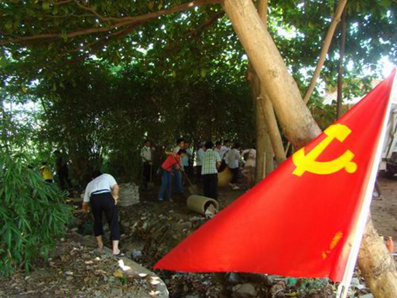 7月8日下午,集团第一党支部和第五党支部全体党员们联手整治东坡湖一卫生死角(靠近图书馆东侧)。