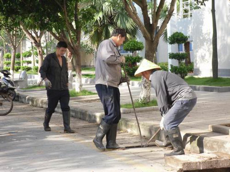 此次四号教学楼、联谊馆周围的排水沟清淤作业预计7月30日完成。