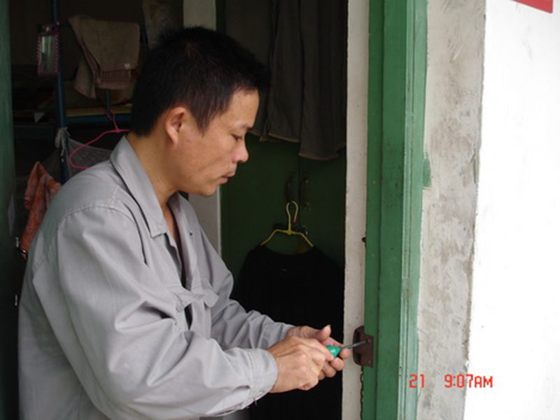 从2009年4月20日起,学生区物业管理中心组织技工师傅分别对1、2、3、6和7号学生宿舍楼的宿舍门锁进行加固。普通宿舍楼的门锁所用固定螺丝相对较短,短的仅1.5cm,长的才4.5cm,螺丝嵌入门框和门板仅1.5cm,显得很不牢固,而现加固所用的螺丝,短的有4cm,长的达8cm,螺丝嵌入门框和门板分别达4cm以上。门锁加固后,显得非常牢固。