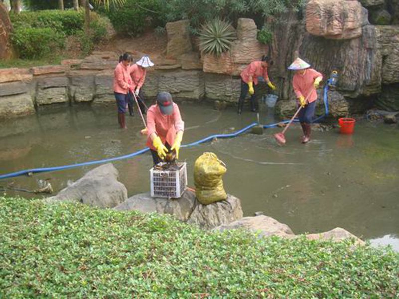 11月18日,旅院服务中心陈国强主任带领清洁部和维修部的10多名员工全面清洁池塘,他们抽干湖水,清理淤泥,清洗湖底,重灌清水,经过大家的共同努力,重还师生员工们一个清澈靓丽的水色洞天。