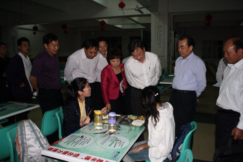 12月12日下午,商务部副部长姜增伟率国务院督查组到我校考察调研学生食堂工作。省商务厅、省物价局、海口市政府领导及相关负责人和省教育厅副厅长孔令德、规划处处长黎当贤陪同考察,校党委书记刘康德、副校长曹献坤和学校有关部门负责人以及后勤集团单明华总经理、许成强副总经理、饮食服务中心周经日主任在学生第五食堂热情接待了督查组一行。