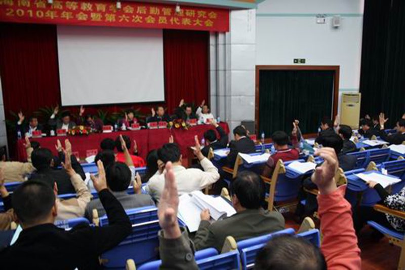 在正式会议上,杨绍展理事长做了第五届理事会工作报告;中国高等教育学会后勤管理研究会分会常务理事、海南大学副校长曹献坤传达了中国高等教育学会后勤管理研究会分会第十次会员代表大会会议精神;省后勤管理研究会秘书长、琼州学院党总支书记冯开鹏传达了全国高校后勤系统秘书长工作会议精神和通报了研究会会费使用情况。