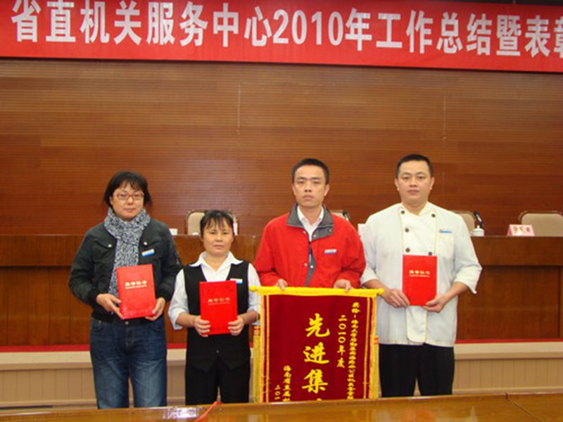 2011年1月28日,从省直机关服务中心2010工作总结暨表彰大会上传来喜讯,我集团接管的海府机关食堂被授予“2010年度先进集体”荣誉称号,其中唐正丽、符史永、谢华玉三人分别获“先进个人”荣誉称号。