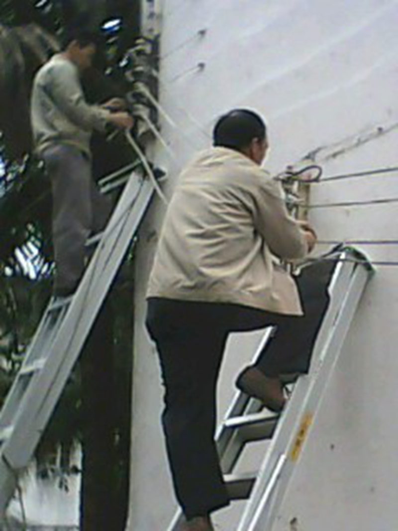 近日,水电服务中心外线维修电工师傅们在陈元业部长的带领下,对海甸校区住宅区57、58栋外墙老旧的供电线路进行整改。住宅区57、58栋始建于上世纪70年代,使用至今已近40年,其原有外墙的供电线路已经老化,且安装杂乱不规范,存在用电安全隐患。通过此次整改排除了安全隐患,为教工住户创造安全的用电环境。