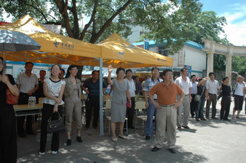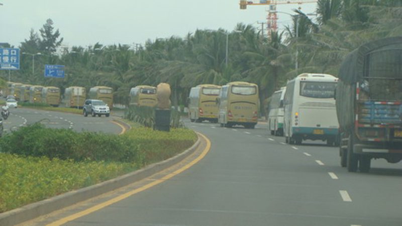 车辆排成一条线平稳地驶向海甸校区。车队到达火车站时,在海口市交通部门警车的开道下,下午三点半左右车辆安全到达海甸校区,明晃晃的阳光下,每一个人都露出开心的笑容。