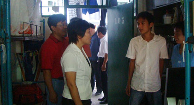 随后,曹献坤副校长一行来到学生区,在学生宿舍3号楼楼管值班室重点检查了学生传染病(发热)登记本、学生体温测量记录表、晨检记录表等。曹献坤副校长还深入学生宿舍,与学生面对面、亲切交谈,并询问学生对甲流预防知识掌握情况。