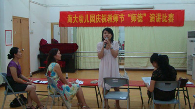在第二十五个教师节来临之际,为营造我园尊师重教的良好氛围,加强师德师风建设,进一步弘扬师德风范,激发广大教师爱岗敬业精神和爱生如子意识,提高教育能力,改进教育方法,增进家园联系。2009年9月8日晚,我园举行了“弘扬师德风范,做优秀幼儿教师”为主题的演讲比赛。