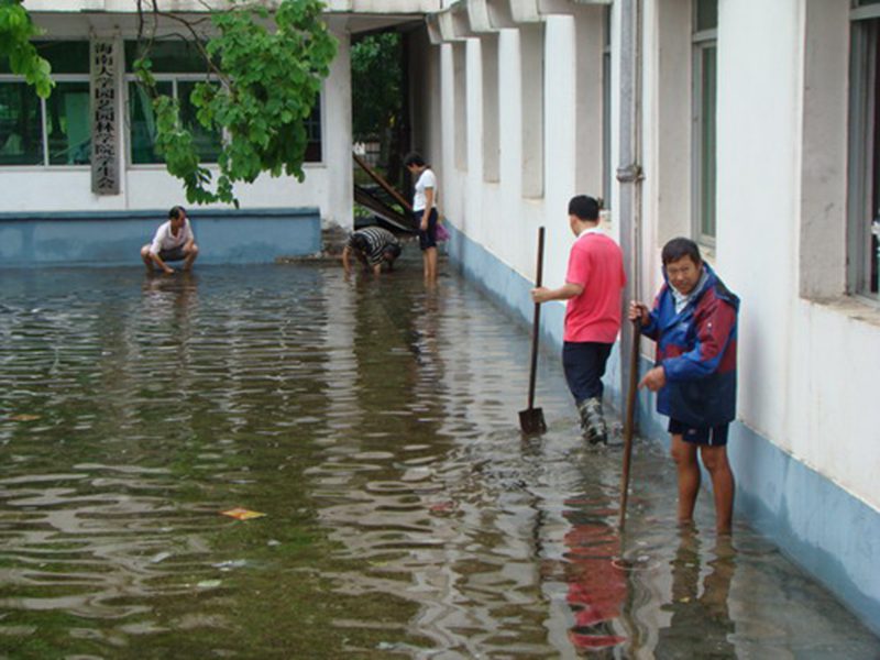 一场罕见的暴雨于2010年9月30日突袭海南,强降雨已经持续了一周多,这是海南自1961年10月份以来出现的最严重强降水,省内媒体报道说这场暴雨49年不遇。大雨造成海甸校区多处道路出现严重积水,给学校正常的教学秩序和师生员工的生活、学习造成极大的影响。