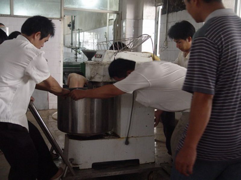 饮食员工正在搬运、清洗厨具