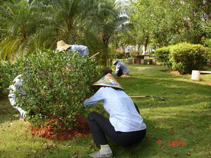 5月5日下午,在学生区物业管理中心李高享主任亲自带领和李丽霞副主任的精心组织下,中心部分楼长和全体卫生工共30人参加了旅游学院绿化养护活动。