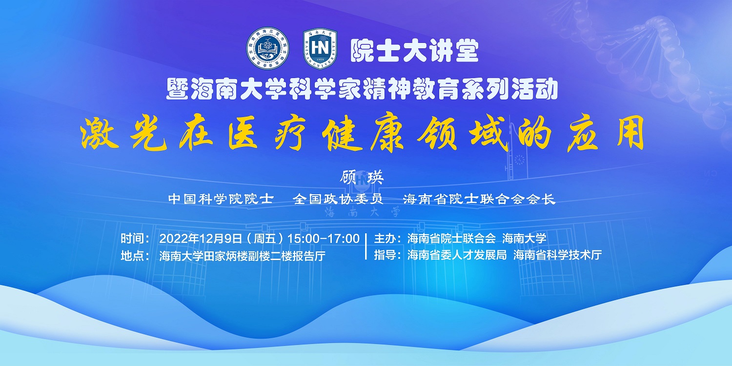 根据海南省院士联合会、海南大学联合举办的“院士大讲堂”和海南大学科学家精神教育系列活动安排,我校于2022年12月9日在田家炳楼学术报告厅举行“激光在医疗健康领域的应用”专题报告会,特邀主讲专家为中国科学院院士、激光医学专家顾瑛教授。顾院士长期致力于激光医学临床、科研和教学等相关工作,发明了新型血管靶向光动力疗法,完成了血管靶向光动力疗法的理论和机理、药物和设备、技术和方法、应用和规范的系统性创新研究,开创了血管靶向光动力治疗的新学术方向和应用领域。