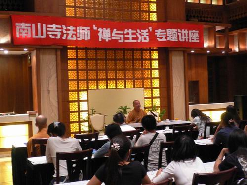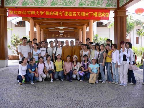 2005年11月5日-6日,为配合《禅宗研究》的课程教学,人文传播学院青年教师熊开发教授带领中文2002级40余位同学赴三亚南山寺进行了为期2天的住寺活动,实践了一次精彩的体验式教学实习。 11月5日晚,南山寺为我院师生举办了“禅与生活”专题座谈会,座谈会由熊教授和能照法师主持,能照法师旁征博引、深入浅出地为大家介绍了佛教的基本精神和禅的内在精髓,其精彩的讲座赢得了同学们的一阵阵掌声,其后,同学们就自己学习心得与能照法师进行了多方面交流,整个座谈会持续了3个多小时。 11月6日,为使同学们亲身感受佛教的气氛,早上5点半熊教授带领同学们参加南山寺早课,伴随着南山寺清晨的暮霭,聆听着僧人们悠远的诵经声,同学们大大加深了对佛教的理解。其后,根通法师还亲自带领同学们整体地参观了南山寺。 通过这次住寺活动,熊教授引导同学们用自己的亲身经历去体验《禅宗研究》的课程内容,不仅有效地补充了课堂教学的不足,而且极大地提高了同学们学习的兴趣与热情。 这种体验式实践教学方法是人文传播学院实施教学改革的重要举措之一,自2002年以来,人文传播学院积极鼓励教师开展教学内容、教学手段和教学方法的改革,取得了丰硕的成果。