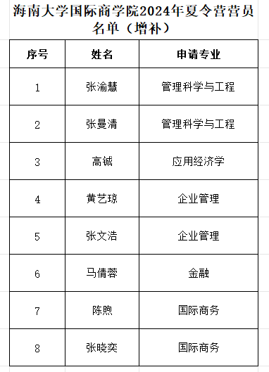 海南大学国际商学院2024年夏令营营员名单(增补)