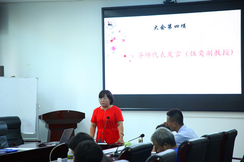 伍奕副教授作为实验班导师代表在会上发言。她教导同学们作为一名优秀法科学子,要做一个有理想、有追求的人,一个正直的人。要做诚实的学问,踏踏实实地走好大学的每一步。同时,要时刻怀有一颗感恩之心,追求真理,学做真人。