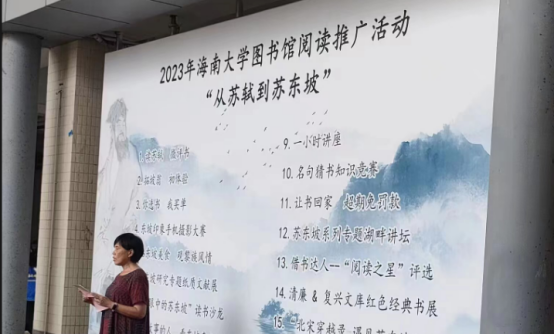 邓玲老师介绍随着首届中国(海南)东坡文化旅游大会的召开,海南大学举办首届东坡校园文化节,图书馆以“从苏轼到苏东坡”作为阅读推广主题,与文旅兴省、地方高校为社会服务以及图书馆为文化传承做贡献的宗旨一脉相承。