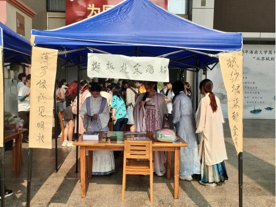 在场师生欣赏了精彩纷呈的海南黎族竹竿舞表演、品尝了东坡美食、黎族服饰走秀,并积极参与由义务馆员团队策划组织的“北宋穿越录遇见苏东坡”游园活动,现场气氛热烈欢乐。